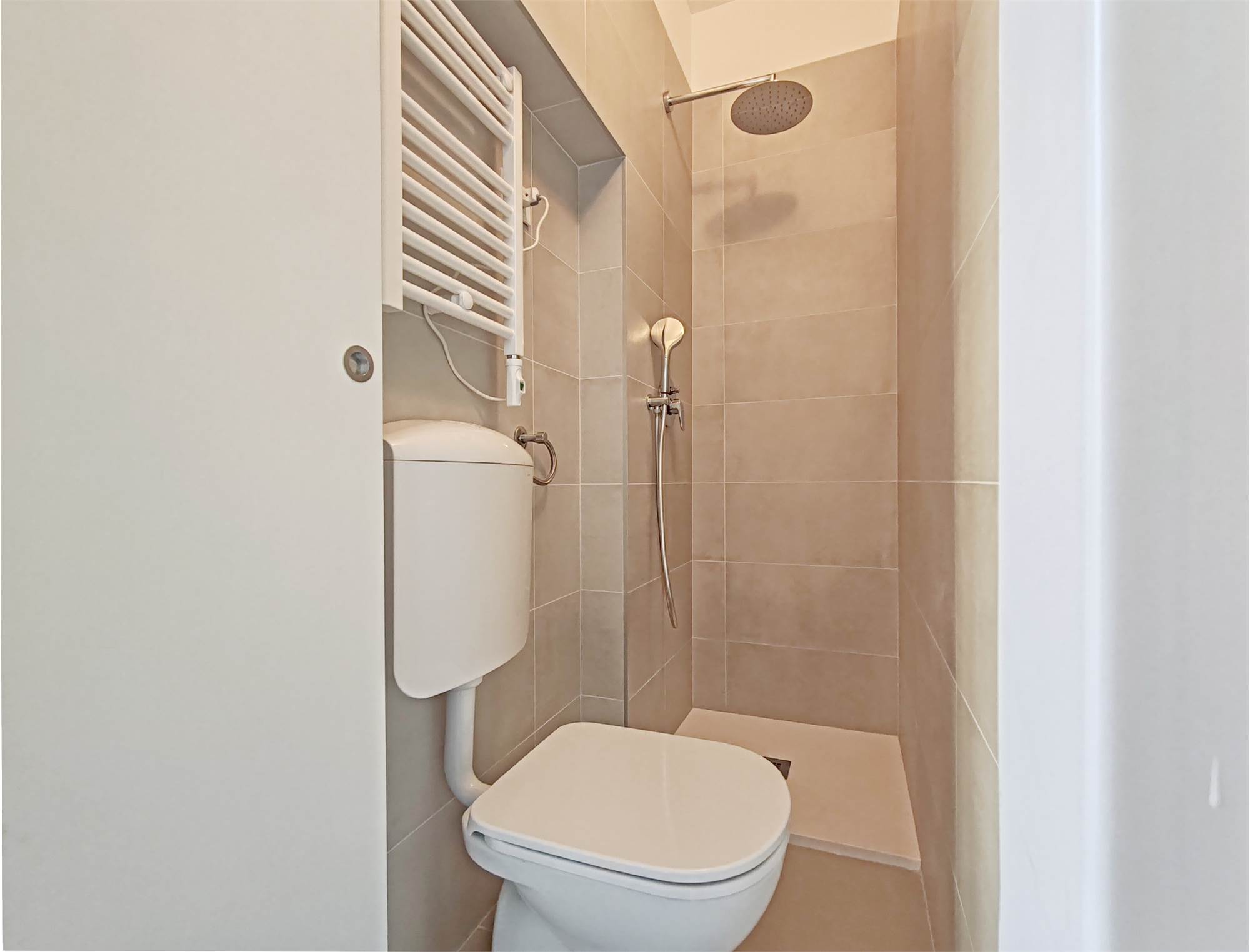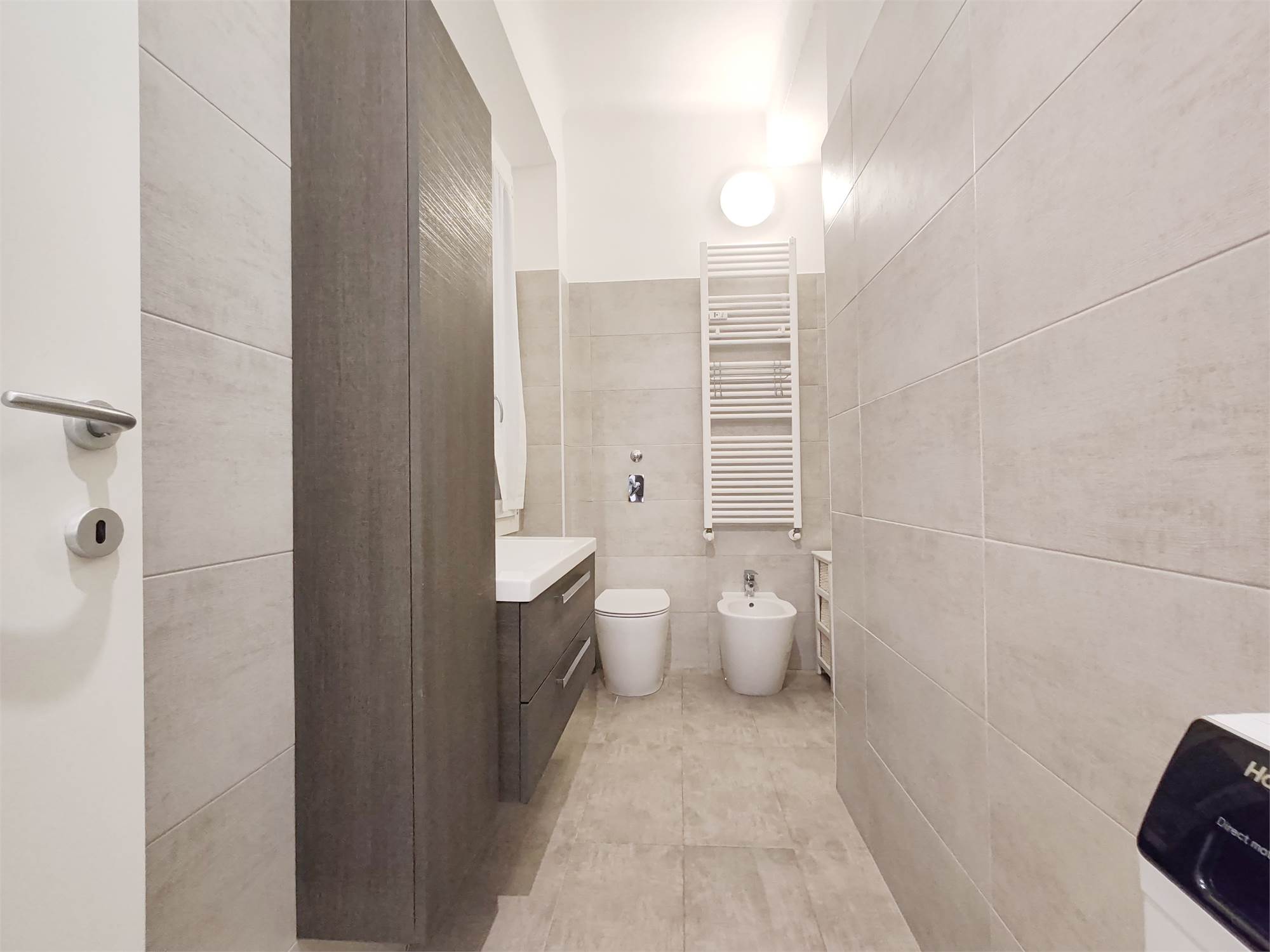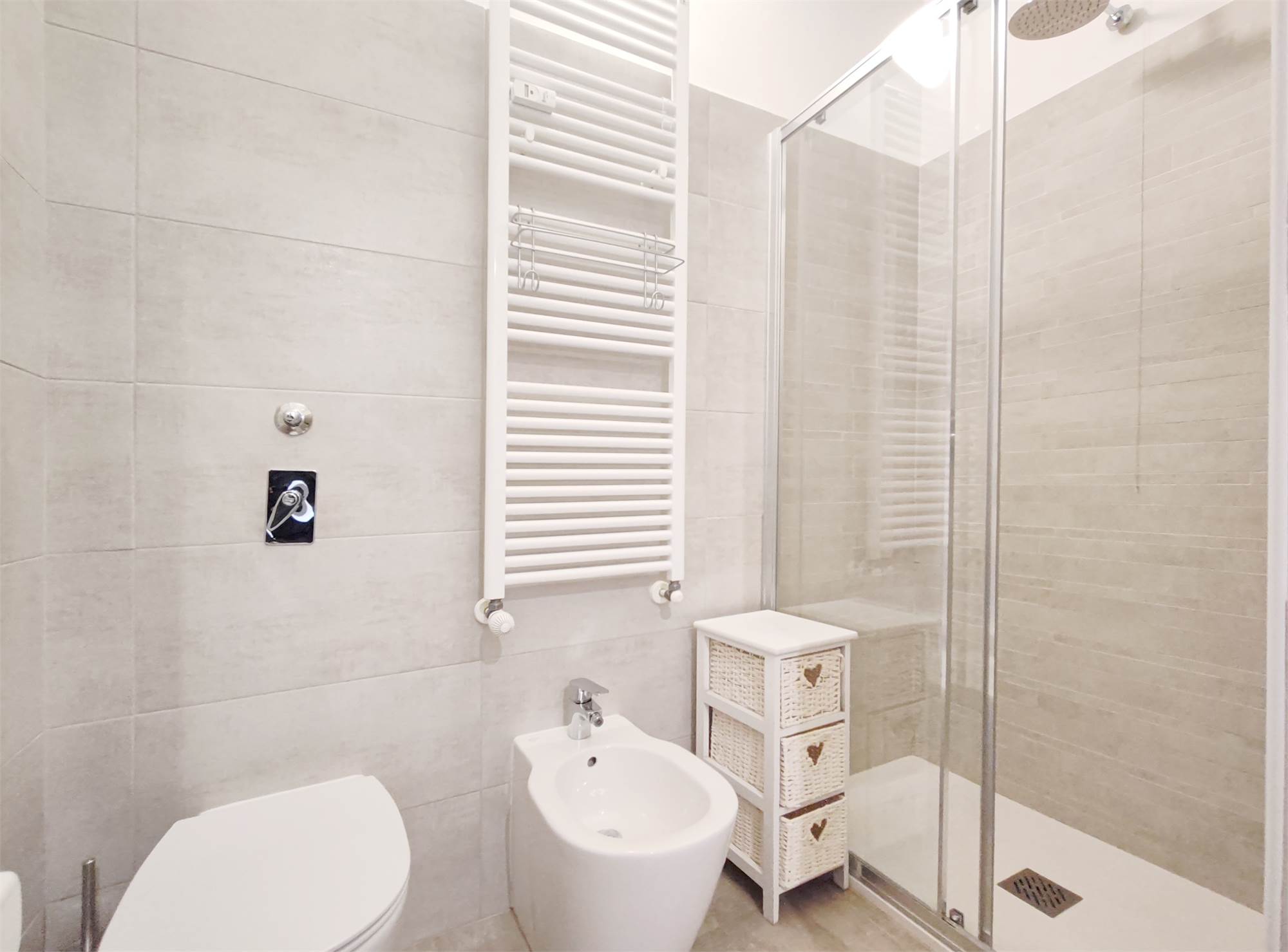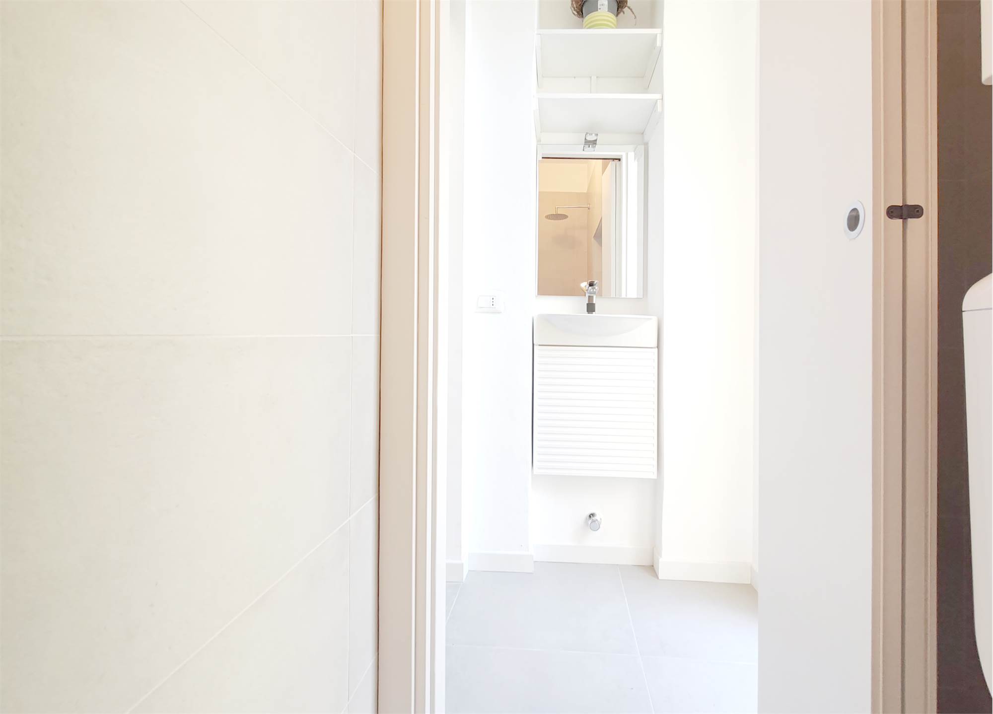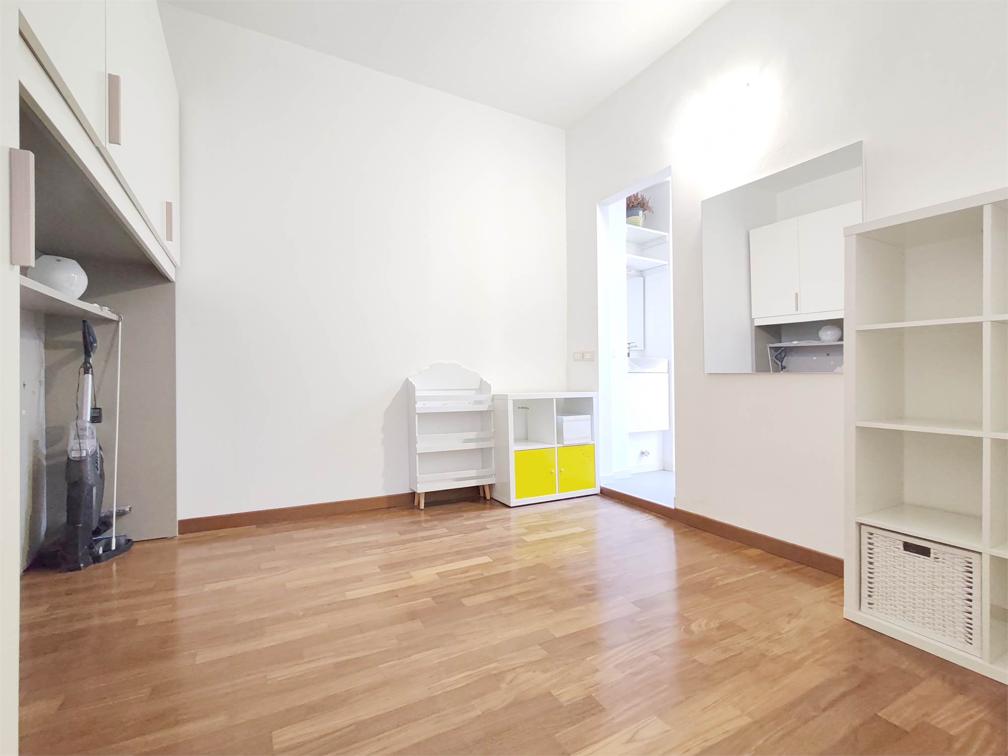 La cucina, moderna e completa di elettrodomestici, offre ampio piano di lavoro e soluzioni integrate che tengono ogni cosa al suo posto. L’impressione è di una zona living pensata per vivere bene, senza ingombri né distrazioni. La zona notte è composta da una camera matrimoniale con tonalità morbide e parquet caldo, un piccolo rifugio luminoso con armadiature capienti. Una seconda camera, può diventare studio, stanza per ospiti o spazio creativo. Le superfici pulite e gli elementi contenitivi già presenti la rendono sorprendentemente versatile. Inoltre sono presenti i servizi.